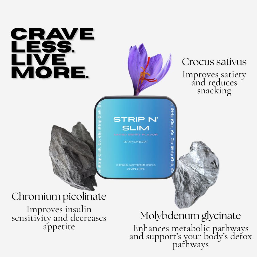 Each Strip N’ Slim oral strip delivers a synergistic blend of ingredients traditionally valued for appetite balance and metabolic support.